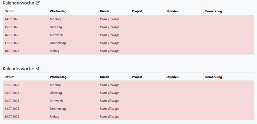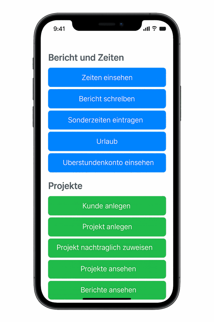 Sie verwalten Kunden, Projekte, Berichte, Gleitzeit und Urlaube zentral in einem System. Schluss mit Zetteln, Excel-Chaos und verlorenen Stunden. Unsere Lösung ist leicht verständlich, sofort einsatzbereit und ideal für kleine und mittelständische Teams.